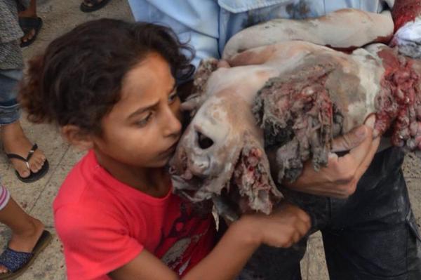Graphic Pic Gazan girl saying goodbye -her sister killed by israeli airstrike in GAZA